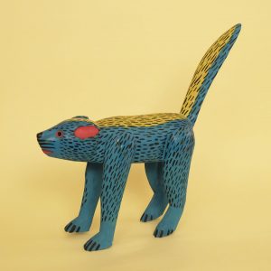 オアハカン ウッド カーヴィング(メキシコ・オアハカ州でつくられる木彫り)の創始者、マヌエル ヒメネスが1970年代おわり〜1980年代はじめに製作したイタチ。マヌエル ヒメネス本人が木彫りを製作していた最後の時代の貴重な作品です。